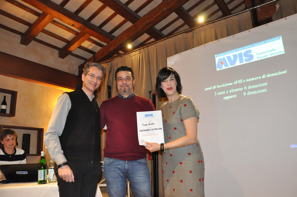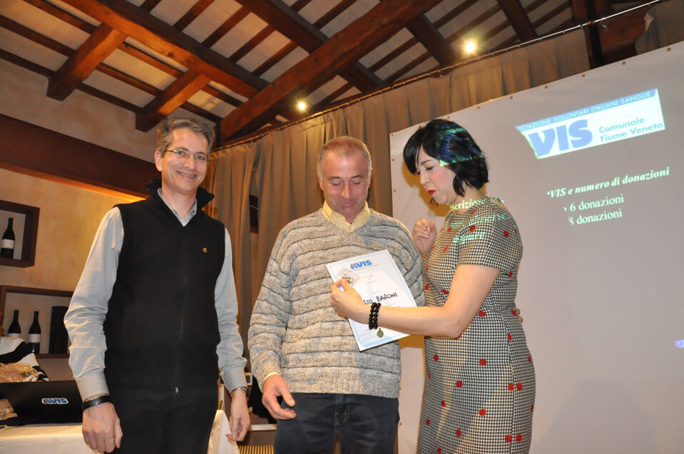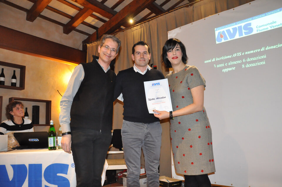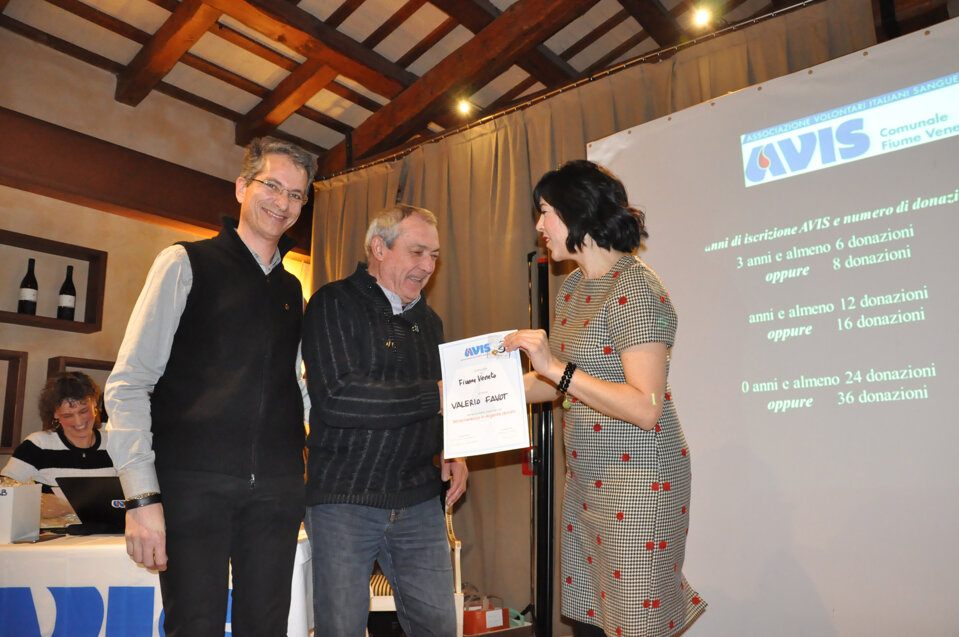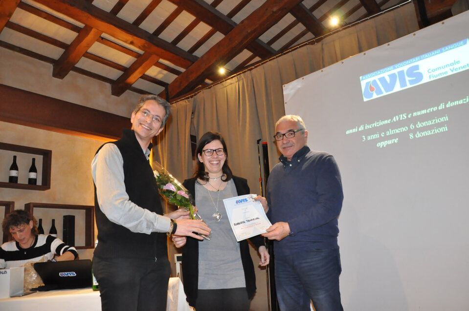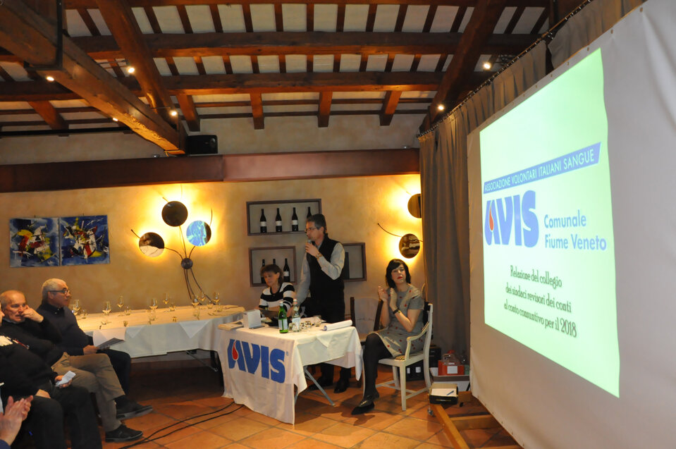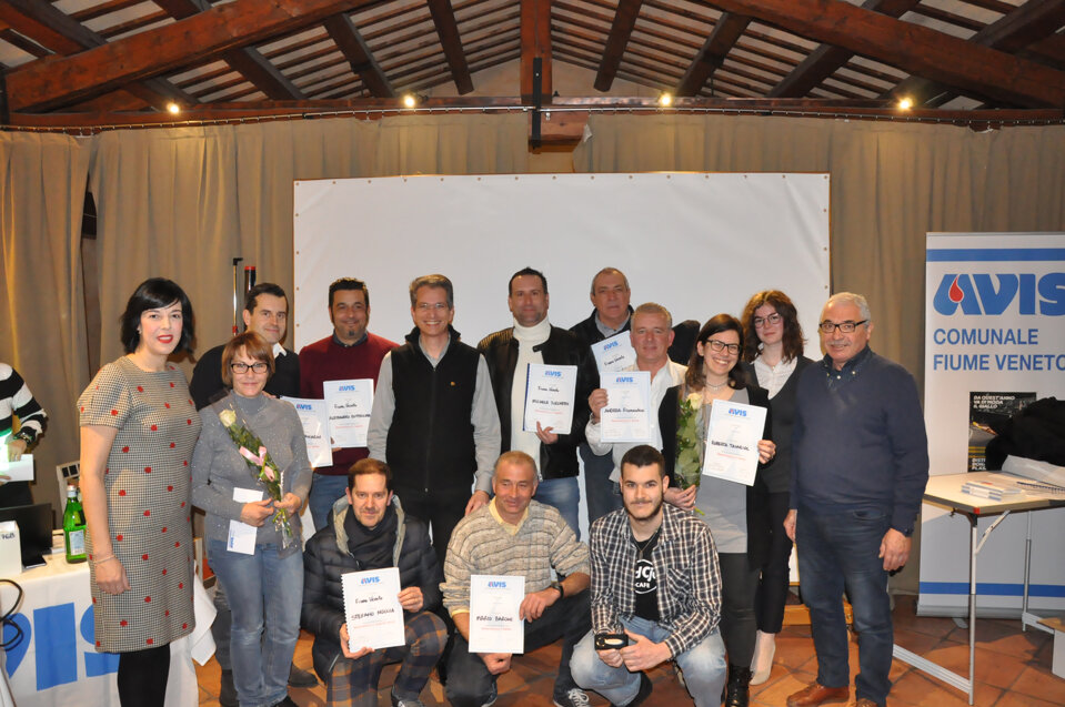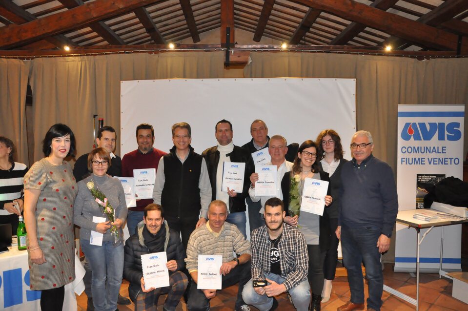 Vorrei iniziare questa mia relazione con una semplice e importante parola, spesso trascurata ma di fondamentale importanza: GRAZIE. Grazie della vostra presenza, Grazie ai donatori che con il loro gesto contribuiscono a salvare vite umane e a dare speranza a chi soffre, Grazie a tutti coloro che dedicano impegno e tempo all’associazione. Grazie a chi prima di noi ha reso possibile che questa famiglia sia diventata così numerosa. Grazie agli ex donatori e a chi non può più donare per problemi di salute o di superamento della soglia dell’età per la donazione, ma che ci aiuta comunque a trasmettere l’importanza del dono. Grazie a noi tutti, 483 soci dell’AVIS di Fiume Veneto che nel 2018 abbiamo fatto con amore sincero, gratuito e spontaneo 626 donazioni. Sento di voler rivolgere un affettuoso pensiero agli amici avisini che ci hanno lasciato nel corso di quest’anno; essi sono presenti nella nostra mente e nei nostri cuori e penso che il modo migliore per onorare la loro memoria sia quello di guardare al futuro, di lavorare, di impegnarci nella vita associativa proprio per non vanificare quanto di positivo è stato finora; invito pertanto ad alzarci tutti in piedi e ad osservare un minuto di silenzio per le persone che non sono più tra di noi.